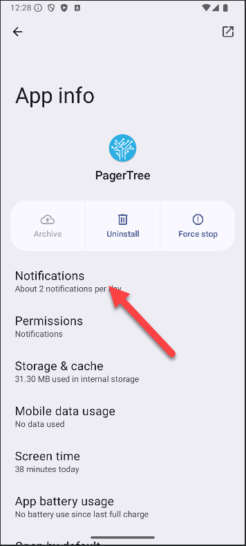 - Ensure that push notification permissions enabled for the PagerTree app in your phone settings.