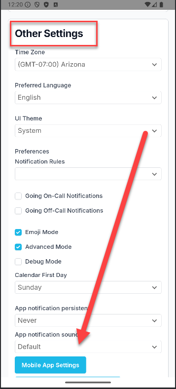 - Scroll down to the Other Settings section, and click the Mobile App Settings button.